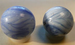 Deze, wat latere ( jaren 50-60) knikker, zal door velen herkend worden. Het is de "German wirepull", gemaakt door de firma Hopf und Hopf uit Coburg-Eschbach. Deze knikkers komen in verschilende kleuren en maten voor in Nederland. Soortgelijke knikkers zijn ook gemaakt in de VS en Mexico, maar in Nederland komt vrijwel alleen de Duitse variant voor.